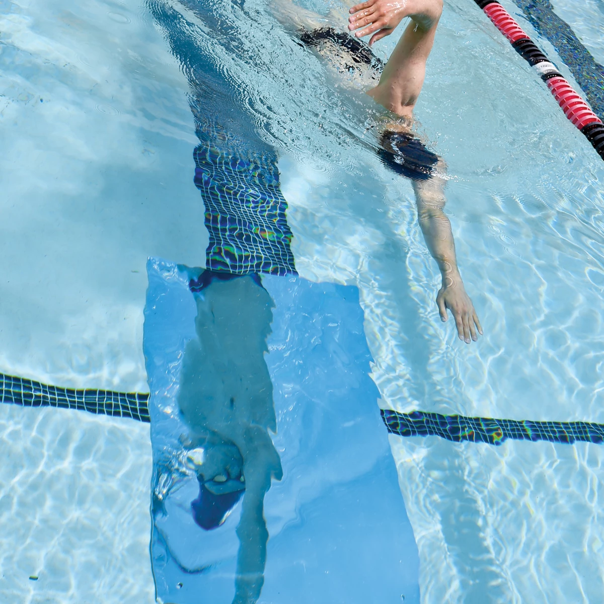 The reinforced, polished aluminum Pool Mirror is the perfect tool for instant visual feedback on stroke technique. Mirror lays flat on the bottom of a pool. Holes provided each corner of the mirror offer the ability to secure the mirror in place at the end of the pool for flip turn feedback. Multiple mirrors linked end to end offer additional feedback. A mirror combined with a stationary swimming device offers prolonged feedback.