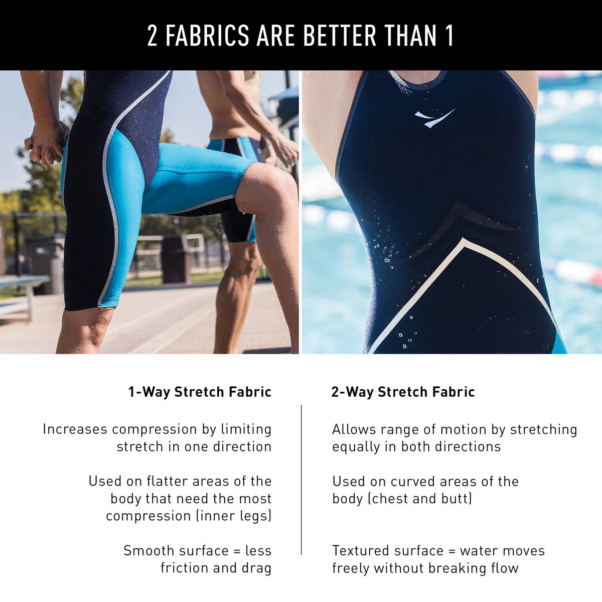 The Rival is an elite-level technical racing suit designed using three main principles: compression, robust seam structure and fit. We used these fundamentals to bring an authentic tech suit to market and provide our athletes with a product that is backed up by research and innovation. The Rival is constructed using two fabrics: the one-way stretch fabric increases compression, while the two-way stretch fabric allows optimal range of motion. The combination of the two fabrics supports muscles and enables muscle efficiency. Seams are strategically placed to strengthen the bond between fabrics and enhance compression in adjacent areas. Designed in California at the FINIS Stroke Lab.