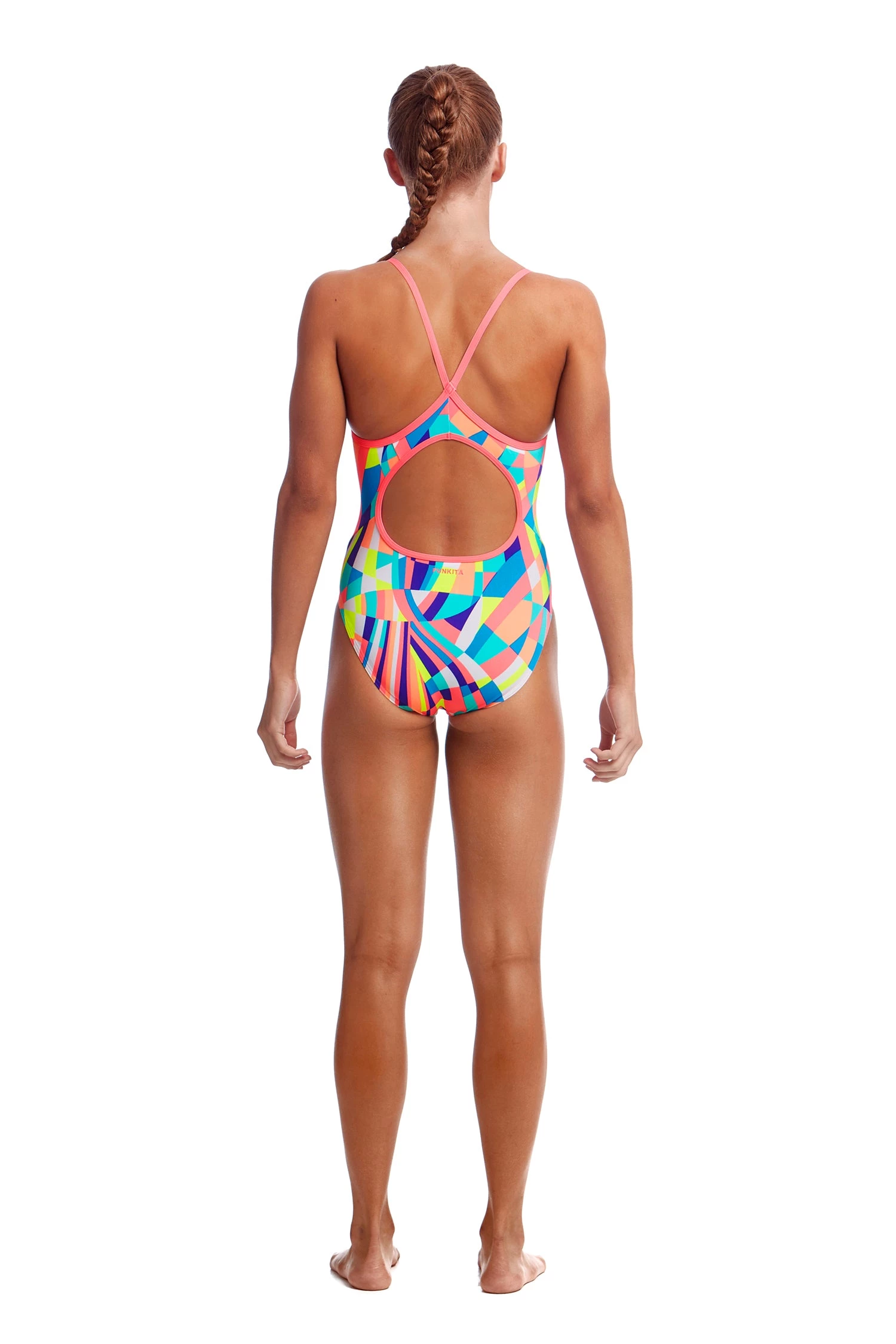 Our classic training style with signature diamond back strap finish and modest rear coverage is perfect for lap sessions. Features a circular cut-out back. With front lining and Funkita embroidery, this easy style says it all.