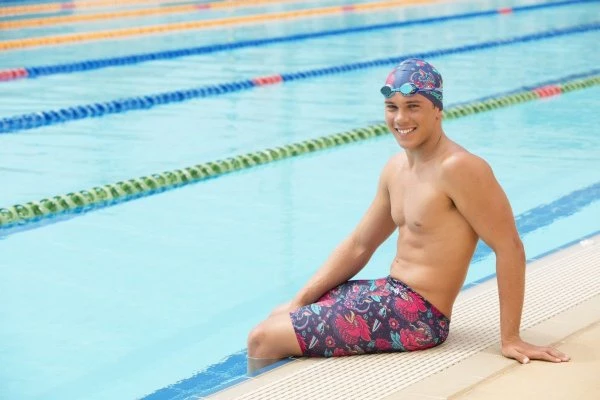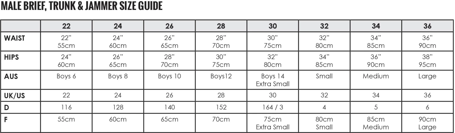 The Jammers are an entry level racing swimsuit that are also suitable for training. The jammers have an elasticated waistband with a hidden drawstring cord making them fully adjustable to ensure they do not fall down when diving or swimming. The jammers are constructed with two panels reducing the number of seams to an inner leg, crutch and backside seam. The leg length ranges between 35cm – 45cm depending on size. The jammers have a gusset lining only.