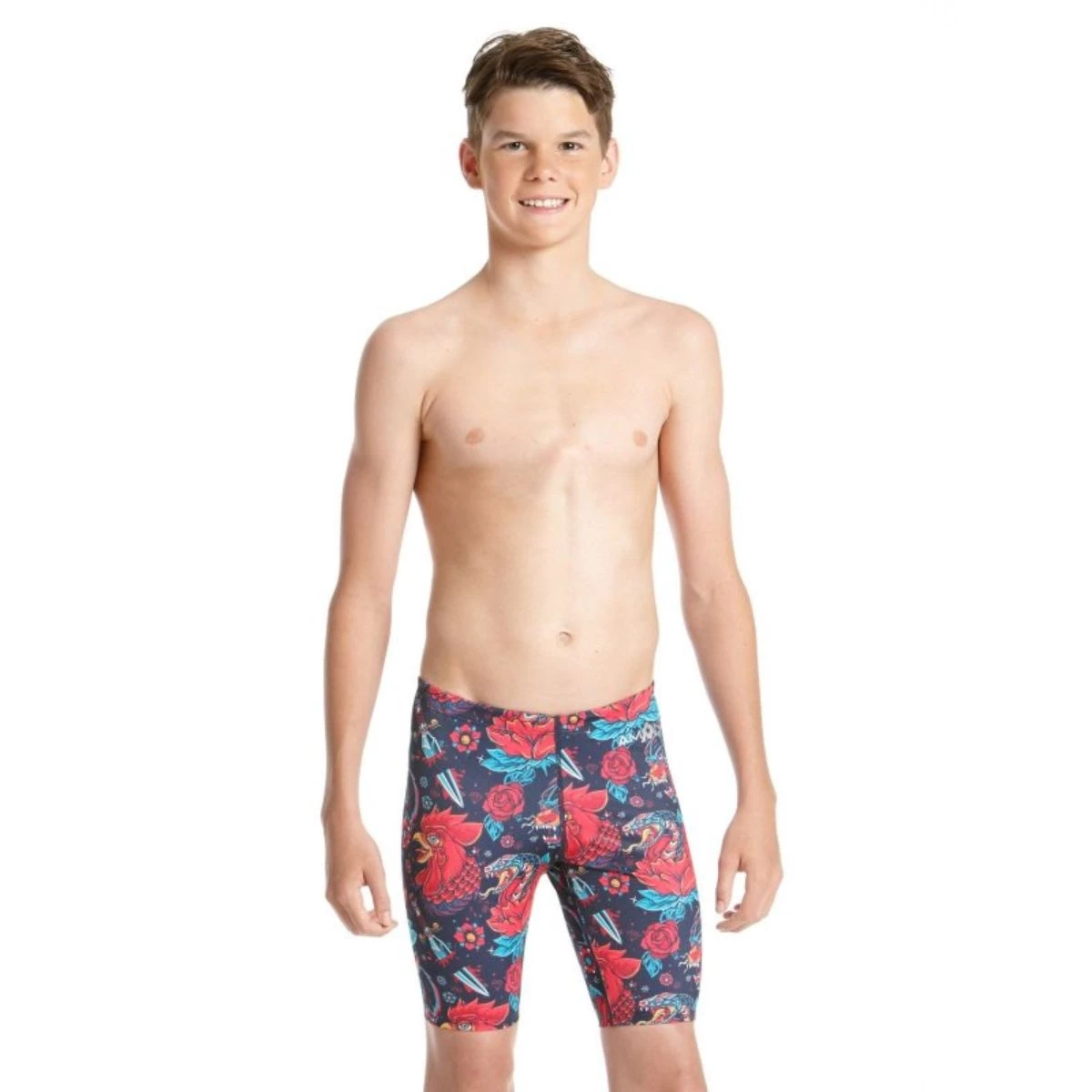 A rooster crowing not enough to stir you out of bed in the morning? How about a scary rooster? A hissing serpent? Or maybe even a growling tiger? Swimmers all know what a struggle it can be to get out of bed in the morning. Between training and other obligations, sleep is an absolute must. Often AMANZI swimmers donāt get enough of it! Jump start your attitude with the wild style of the Oblivion Jammers. Covered in ferocious critters, these jammers might just scare you out of bed, so that you can make it to the dreaded early morning swim practice.